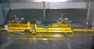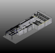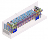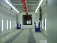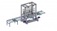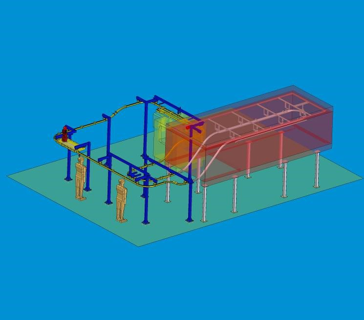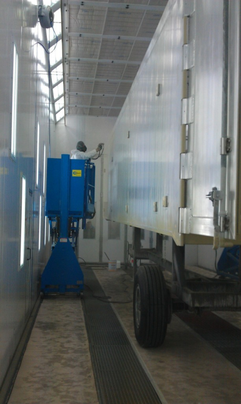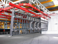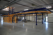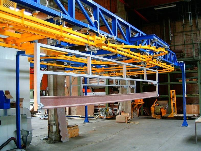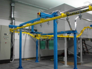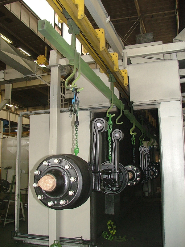 K34 típusú P&F (Power and Free) konvejor vasúti elemek festéséhez.